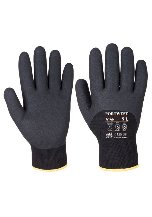 Introducing the Portwest Arctic Winter Glove - the ultimate solution for cold weather protection! Designed with a twin liner to trap in heat, this glove offers increased insulation for maximum warmth. With its 3/4 nitrile sandy dipping, it not only provides excellent liquid protection but also ensures a secure grip in both wet and dry conditions. Boasting a remarkable 250°C contact heat protection, this glove is perfect for various industries. Its flexible and durable construction guarantees superb abrasion and tear resistance, while the breathable seamless liner enhances comfort. CE certified and featuring a retail tag for easy presentation, this glove is a must-have for anyone working in cold environments. Don't compromise on safety and comfort - choose the Portwest Arctic Winter Glove today!
