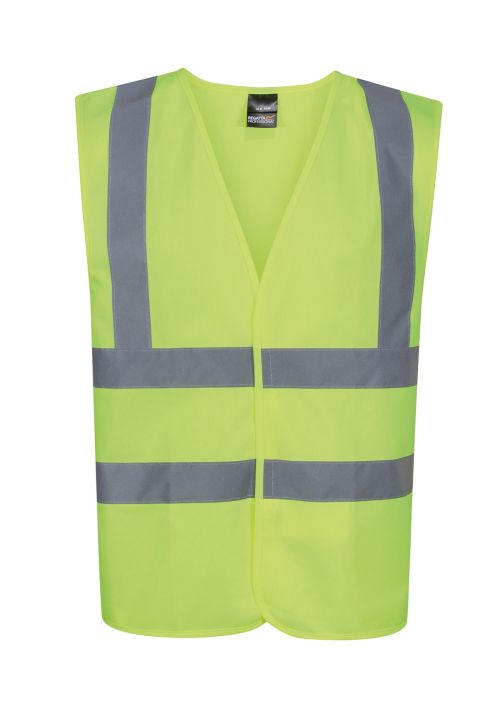 This hi-vis vest is the perfect way to stay seen on the job. Whether youre working in low light or in daylight the angled chevrons on the vest will show which way youre facing. The vest is made of 100% polyester tricot mesh fabric making it lightweight and breathable. Its ideal for popping on over your base and mid layers and the hook and loop fastenings provide a secure fit. This hi-vis vest conforms to EN ISO 20471:2013 +A1:2016 Class 2 so you can be sure youre meeting the highest safety standards. With this vest you can stay seen and safe on the job.