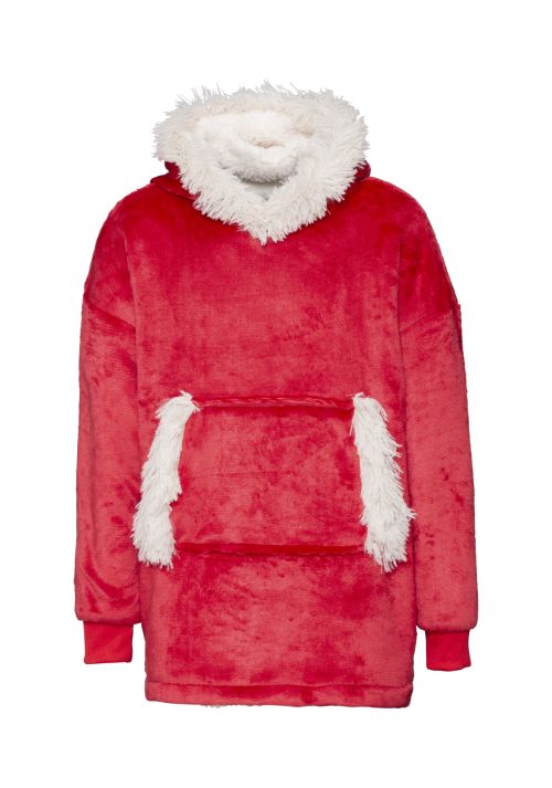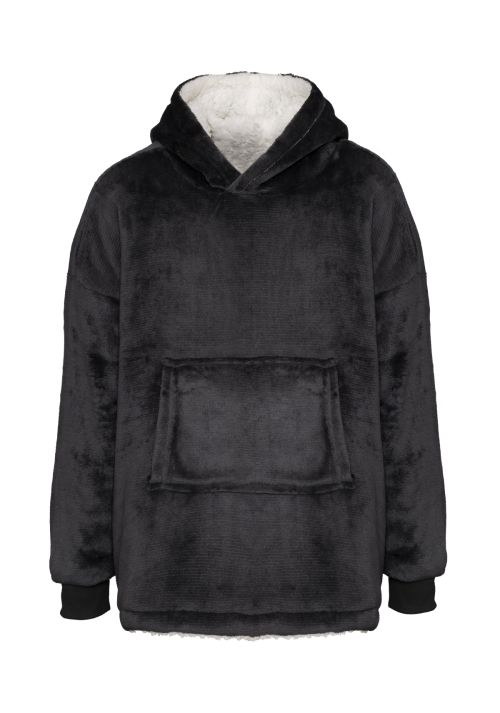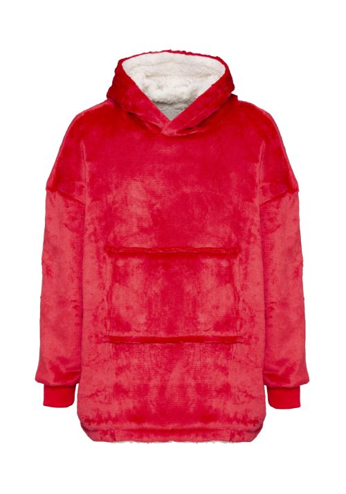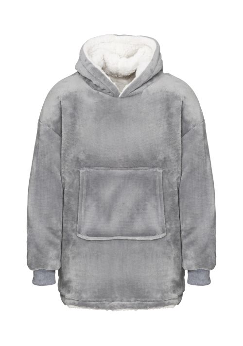 Super-soft microfleece hoodie with snuggly warm sherpa lining. Oversized – one size fits most. Large pocket keeps your hands warm. Reversible – choose your favourite way.
