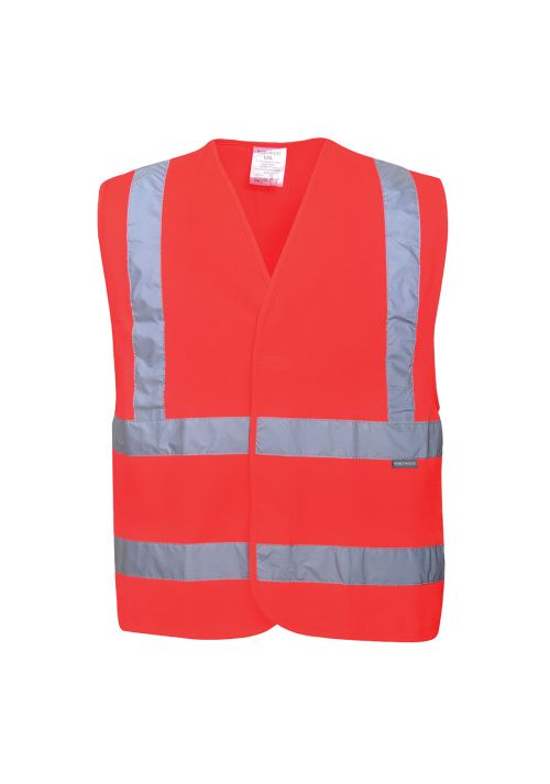 Stay visible and safe with the Portwest Hi-Vis Two Band & Brace Vest. This lightweight and comfortable vest features reflective tape for increased visibility, ensuring you are seen in any lighting conditions. With a convenient hook and loop closure, it's easy to put on and take off. Designed with a generous fit for wearer comfort, this vest is certified to EN ISO 20471 after 50x washes, guaranteeing its durability. It also complies with RIS 3279-TOM for the rail industry (orange only). Available in sizes up to 7XL, this CE certified and UKCA marked vest is a must-have for anyone looking for high-visibility protection.