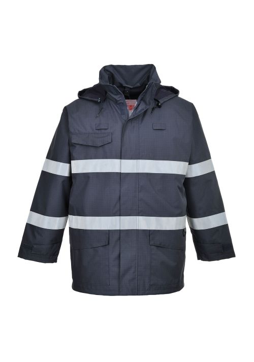 Stay protected in any environment with the Portwest Bizflame Rain Multi Protection Jacket. This parka is not only waterproof and breathable, but it also offers flame resistance and anti-static properties. The detachable FR fleece liner provides extra warmth in extreme weather conditions. With features like taped seams, premium reflective tape, and multiple pockets for storage, this jacket is designed for convenience and functionality. The pack away hood, radio loops, and print access for branding add even more versatility. Stay comfortable, dry, and safe with this CE certified and UKCA marked jacket.