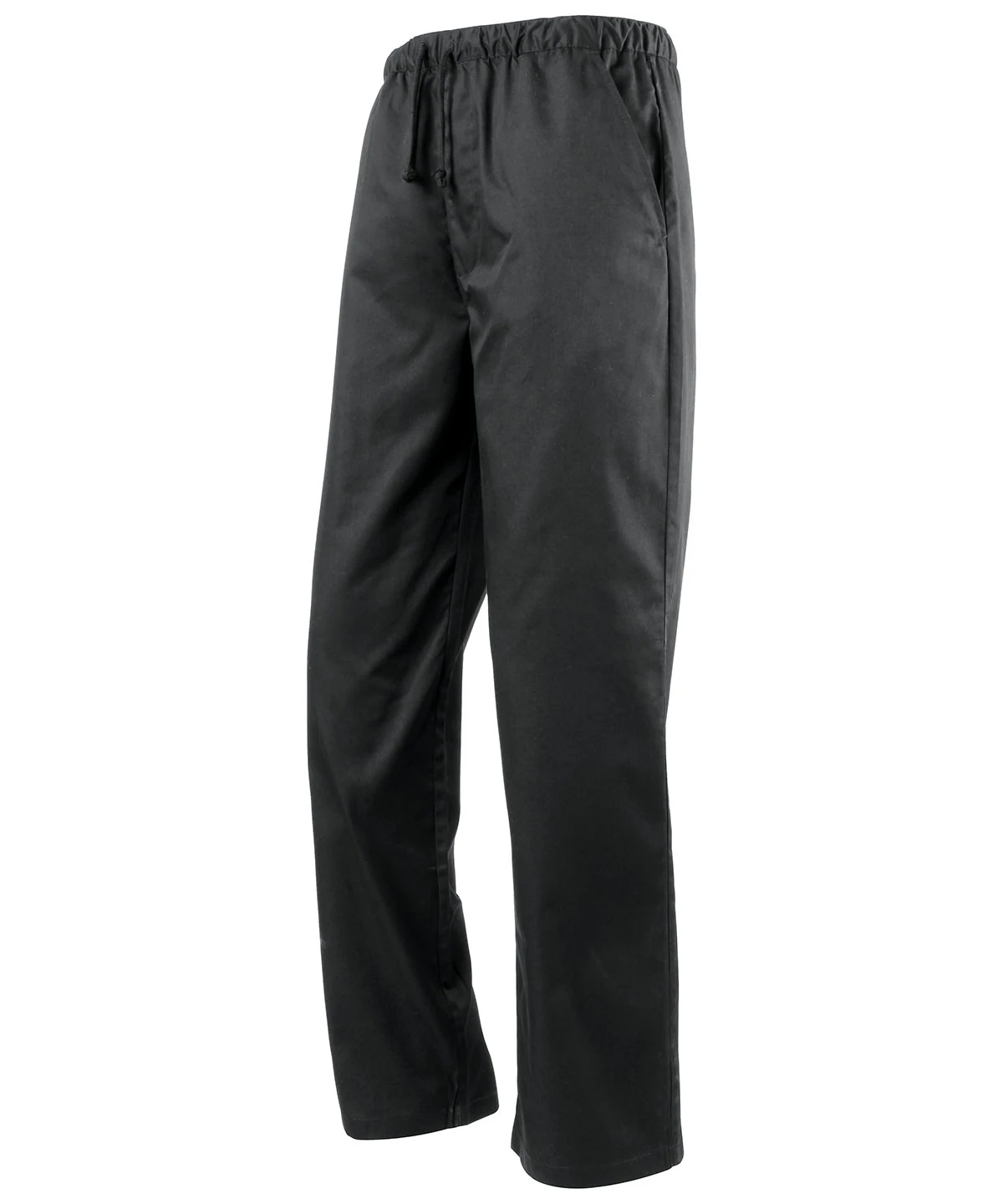 The Premier Essential chef's trousers are designed for comfort and functionality in the culinary environment. These unisex pull-on trousers feature an elasticated waist for easy wear and a drawcord to ensure a secure fit. The trousers come equipped with two conveniently placed side swing pockets, perfect for keeping essential tools and items within easy reach while you work.